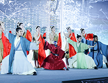 人形机器人与舞蹈演员一起表演舞剧《天工开物》选段。(崔益明/摄)