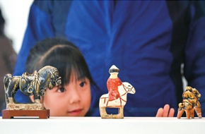 小朋友在“春风骐骥:马年生肖展”上欣赏展品。